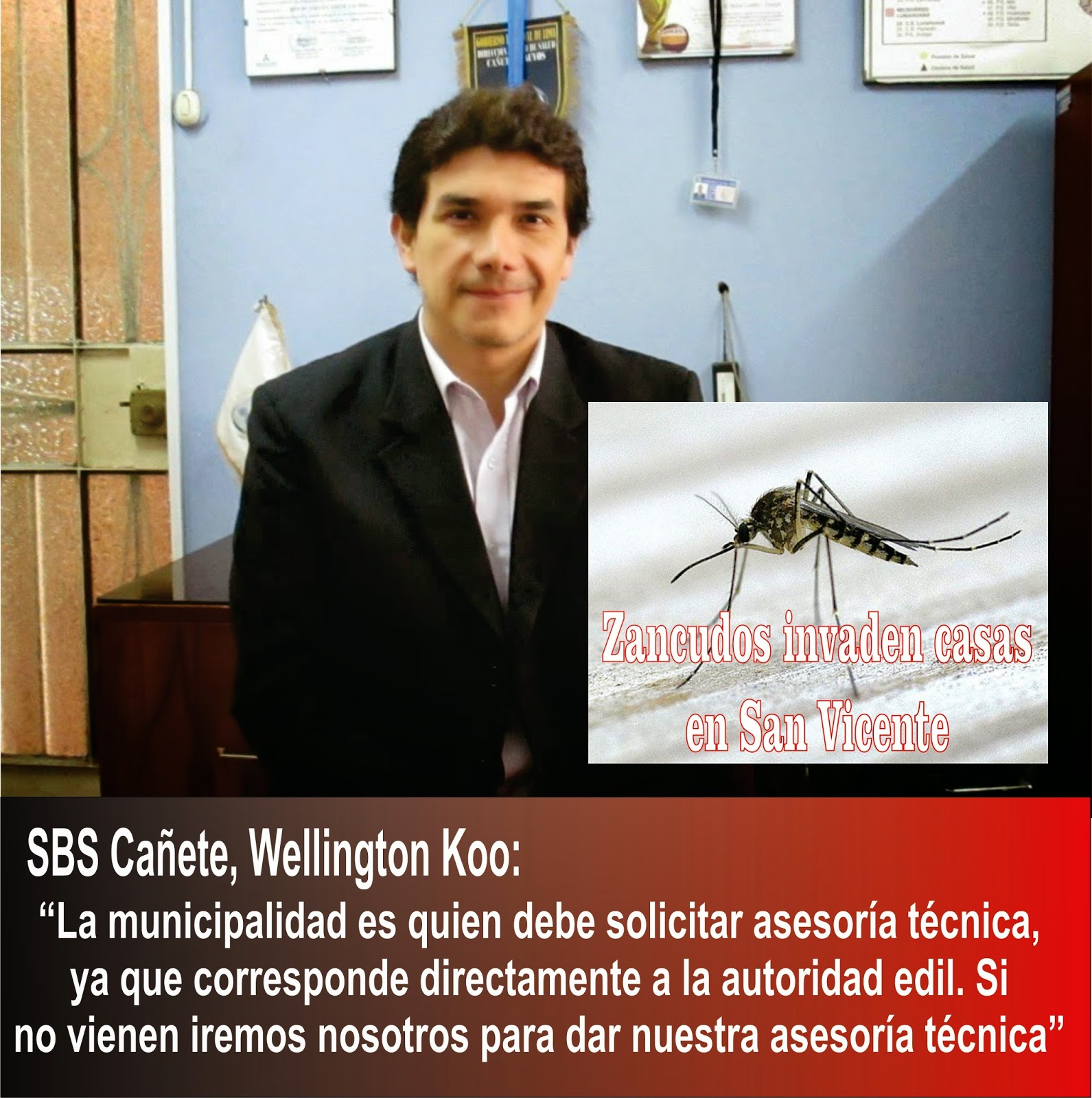 El jefe de los Servicios Basicos de Salud de Cañete, Dr. Wellington Koo Venegas, sostuvo que el problema de los zancudos le corresponde directamente al Municipio dar solución a esta problema que viene afectando a la población y que ellos pueden dar apoyo con la asesoría técnica para combatir estos zancudos.